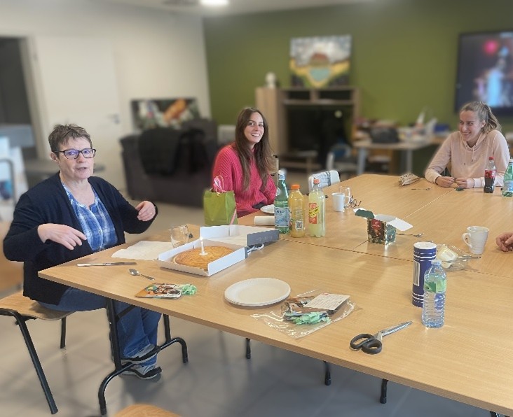 Nous avons eu la surprise de revoir une ancienne collègue Charline, venue partager ce temps avec nous, et l’occasion de fêter l’anniversaire de Corinne qui se prépare doucement à son départ en retraite.
